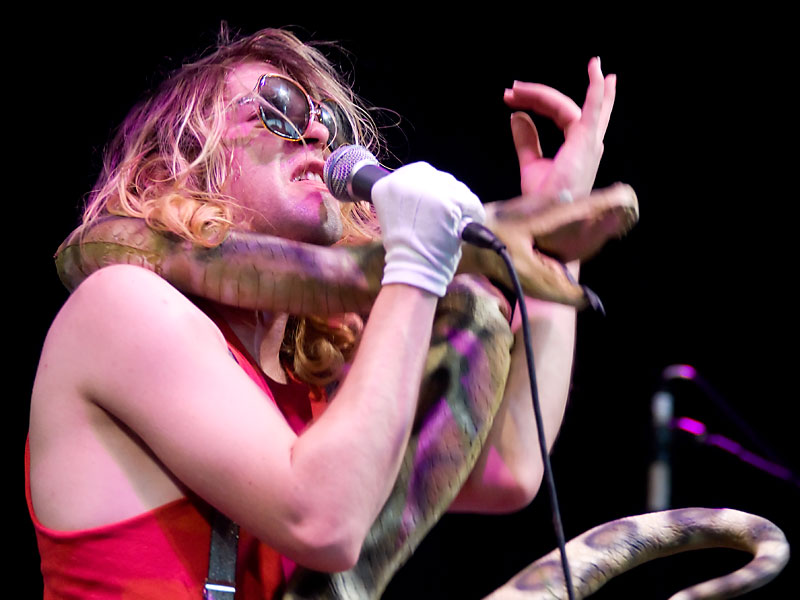 If Two Door Cinema Club are the type of band that makes you question whether you’re just too old to like popular music, Ariel Pink’s Haunted Graffiti are the type of band that makes you question whether you’re still in tune with the more leftfield side of music, the music that’s been critically acclaimed and has rated well in the end of year, best album lists. To be quite honest, I don’t really care as Ariel Pink’s Haunted Graffiti are the worst band I’ve seen in a long while, so whether I’m missing something is largely irrelevant. It’s like watching a bad band from the worst parts of the 1980s soundcheck, whilst a prima donna male singer struts around the stage bellowing instructions to the rest of the band. It’s so bad, it’s embarrassing. Much more fun is watching Jenny Lewis trying to dance to it as she watches from the VIP section at the side of the stage.
