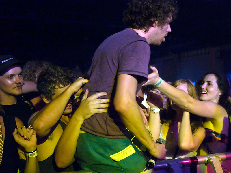 Over on the main stage, Yeasayer manage to make enemies with all the gathered photographers by playing three songs in almost complete darkness.